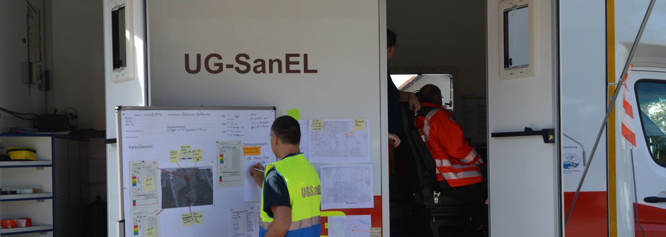 Bei Katastrophen und bei größeren Schadensereignissen mit einem Massenanfall von Verletzten, deren Bewältigung auf Grund des Schadensumfangs einen Koordinierungsaufwand in besonderem Maße erfordert, werden sowohl der Organisatorische Leiter als auch der Leitende Notarzt zur Wahrnehmung ihrer Aufgaben an der Einsatzstelle zusätzliche Unterstützungskräfte benötigen. Für diese Fälle kann für den Bereich einer Kreisverwaltungsbehörde von den Hilfsorganisationen in Abstimmung mit der Kreisverwaltungsbehörde eine ,,Unterstützungsgruppe Sanitäts-Einsatzleitung - UG-SanEl –” aufgestellt werden. Die UGSan-EL besteht aus vier ehrenamtlichen Einsatzkräften in Zweifachbesetzung.